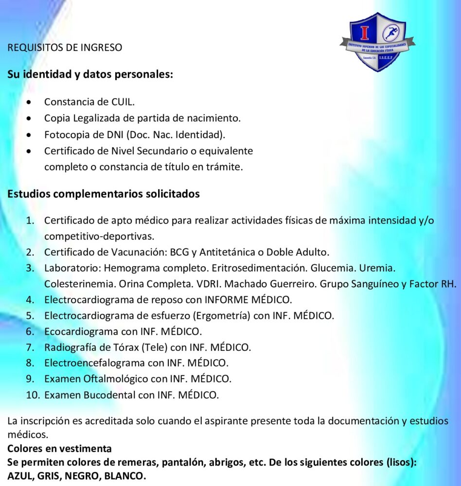 Todos los ingresantes 2026 presentarse con ropa deportiva el (fecha a confirmar) a las 8:00hs en la sede institucional